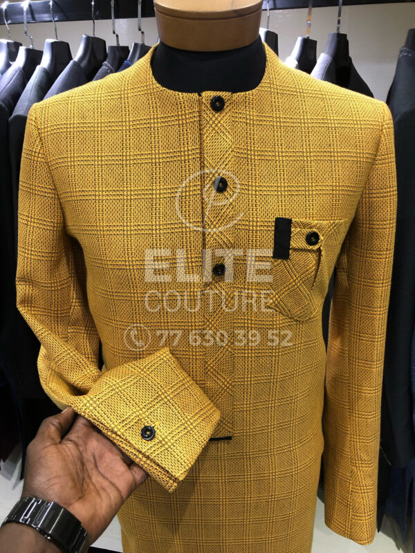 costume africain made in senegal 🇸🇳 en couture simple avec poche passepoilée en tissu ecossais