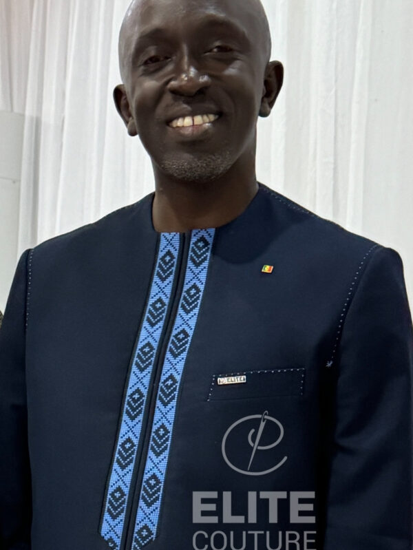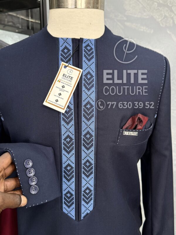 costume africain made in senegal 🇸🇳 en super 100 bleu roi avec broderie ordinateur
